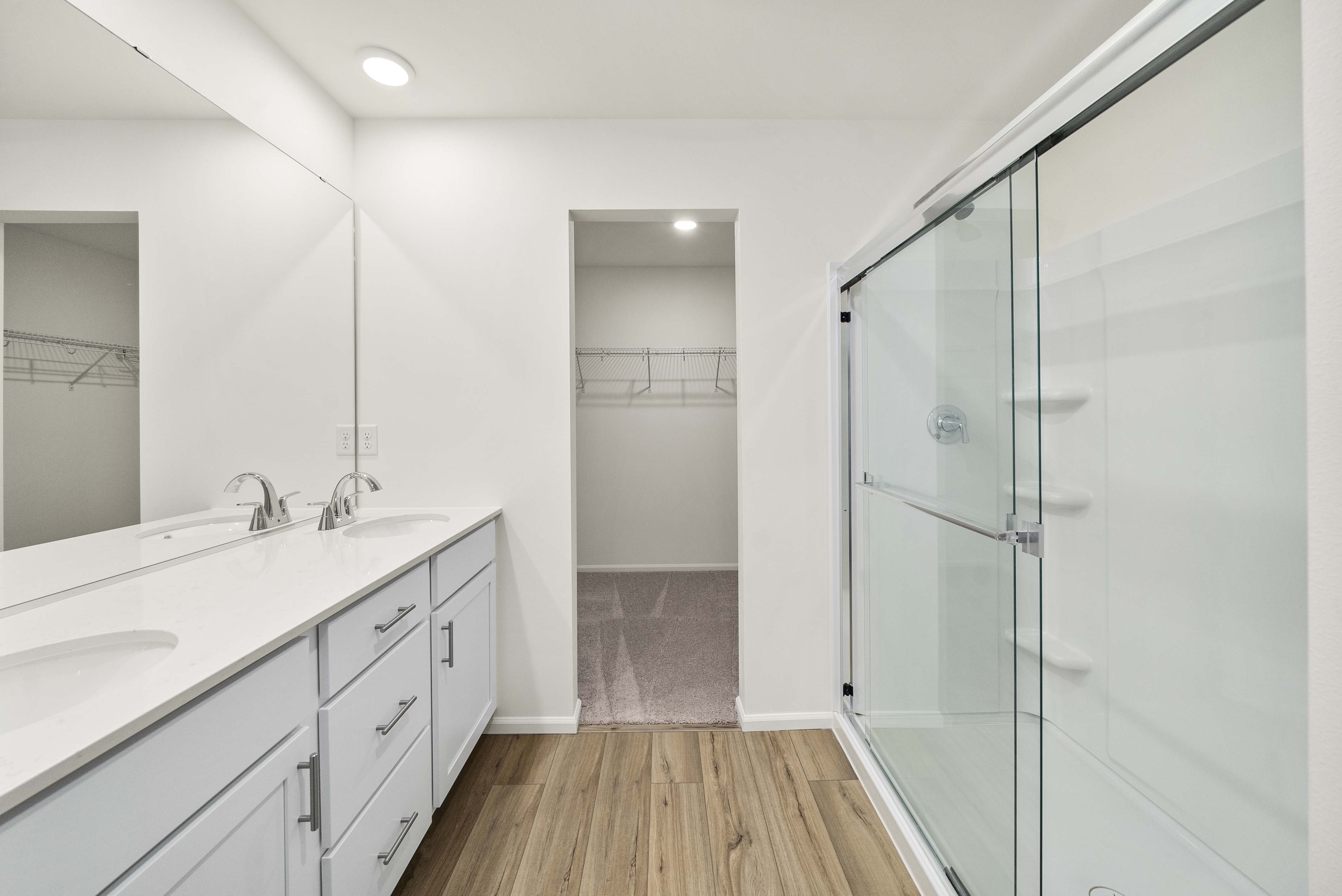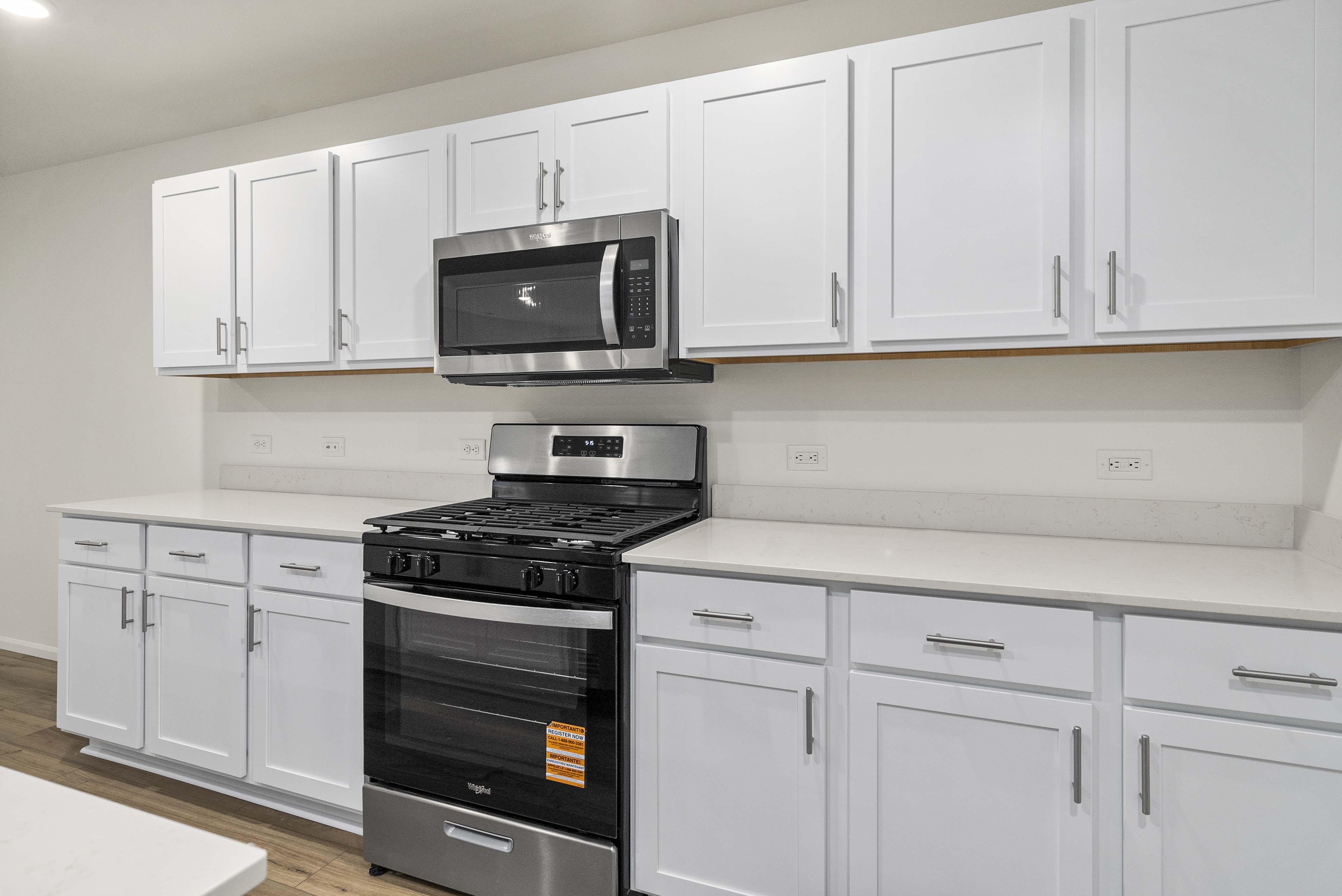 Showcasing thoughtfully designed two-story floor plans, these homes highlight modern features that blend comfort and innovation. Enjoy stylish quartz countertops in the kitchen and primary suite, premium stainless-steel appliances—including a electric cooktop with a 36” wall-mount range hood and smart Wi-Fi oven/microwave combo—plus 34.5-inch cabinets with molding, soft-close doors, pulls, and under-cabinet lighting.